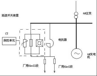 【電抗器常識】實例解析限流電抗器的應用(2) 在運行過程中,發現以下問題: 2.1 當啟動大容量電動機如給水泵時,6kv母線電壓降低到80%左右影響其它電機及用戶正常使用。曾經出現過兩臺給水泵同時啟動時電抗器后備保護動作跳閘的事故,嚴重影響了系統的安全穩定運行。 2.2 當電抗器運行在額定電流70%左右時,電抗器線圈發熱嚴重,出現繞組過熱變色現象。 2.3 電抗器長期串聯在系統中本身消耗巨大無功及有功,導致運行不經濟 2.4 系統受到大擾動時電壓波動大,給發電機電壓調節造成困難,影響系統穩定 3 問題的解決對策 3.1 解決思路 為了解決這個問題,經過技術咨詢和考察,發現利用國內一種大容量高速開關裝置(簡稱FSR裝置)可消除電抗器產生的影響。具體解決辦法是將FSR裝置并聯在電抗器兩端,如圖2。