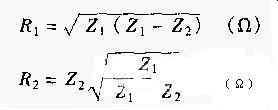 式中,Z1和Z2為網絡1和網絡2的阻抗,它們分別為300Ω和75Ω。將它們代入上面兩個公式中,則求得RI=259.8Ω,R2=86.6Ω。